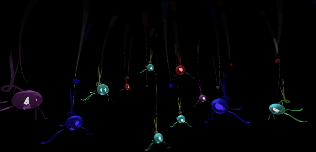 Der Schluss der Performance sieht für die Hauptfigur einen möglichen ‚Heilungsprozess‘ vor, der die Ablösung von den hysterischen Symptomen beinhaltet. Die Wendung wurde von einem Monster-Objekt markiert.